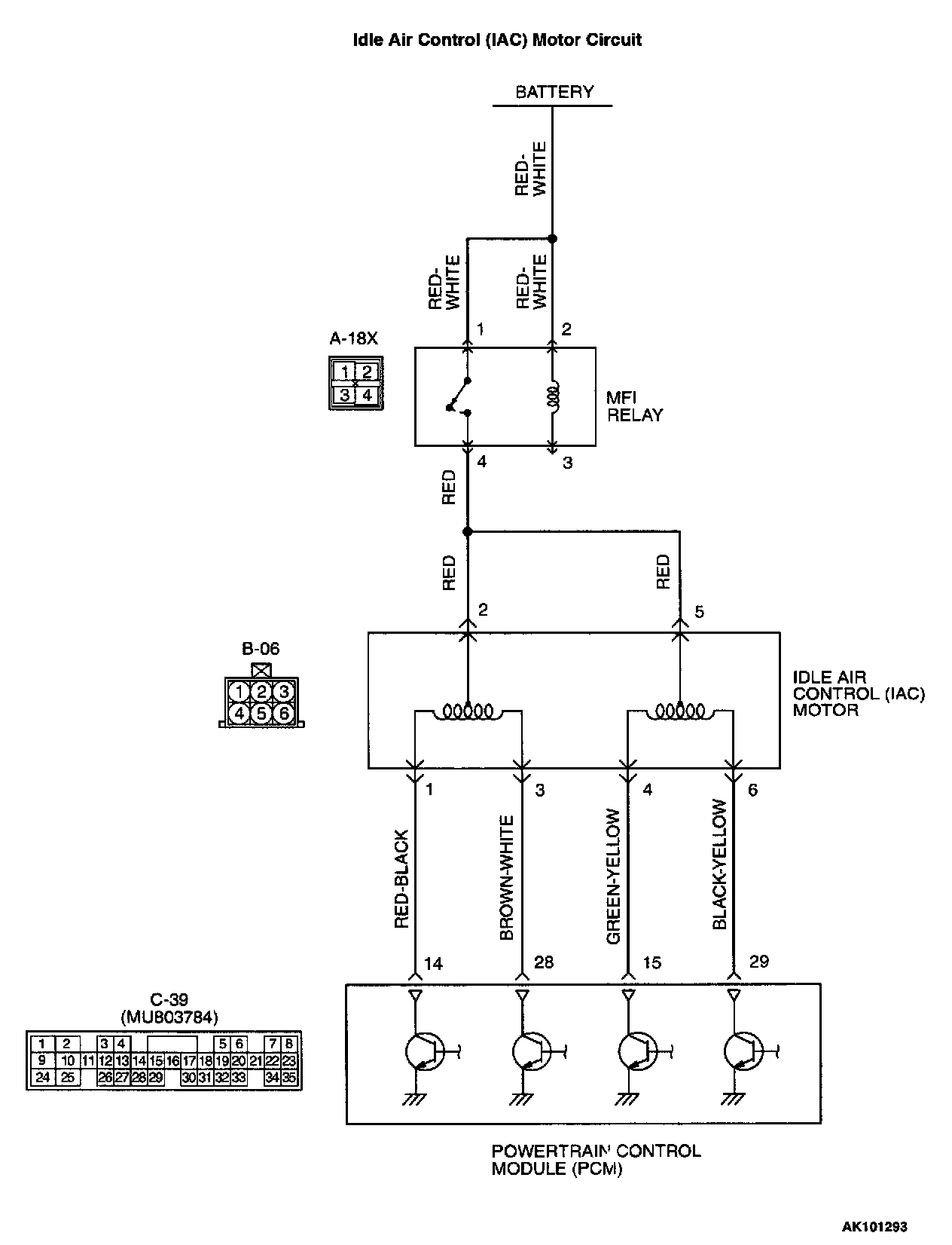 - The idle air control motor power is supplied from the MFI relay (terminal 4).
