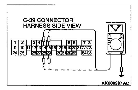 STEP 7. Check the power supply voltage at PCM connector C-39 by backprobing.
