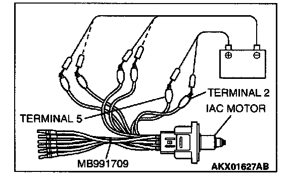 2. Connect special tool MB991709 to the idle air control motor. (All terminals should be connected.)