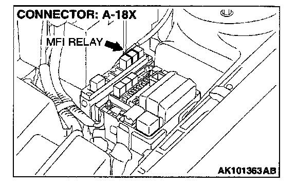 STEP 6. Check connector A-18X at MFI relay for damage.