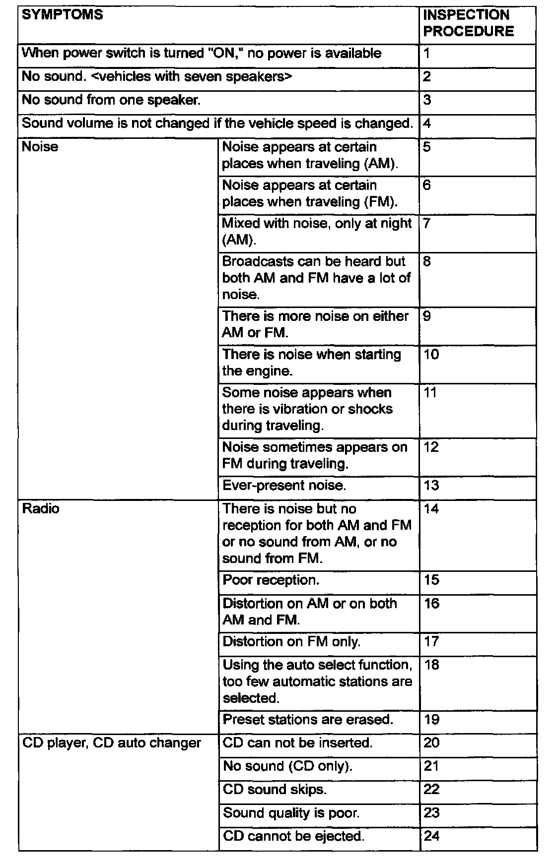 Trouble Symptom Chart: