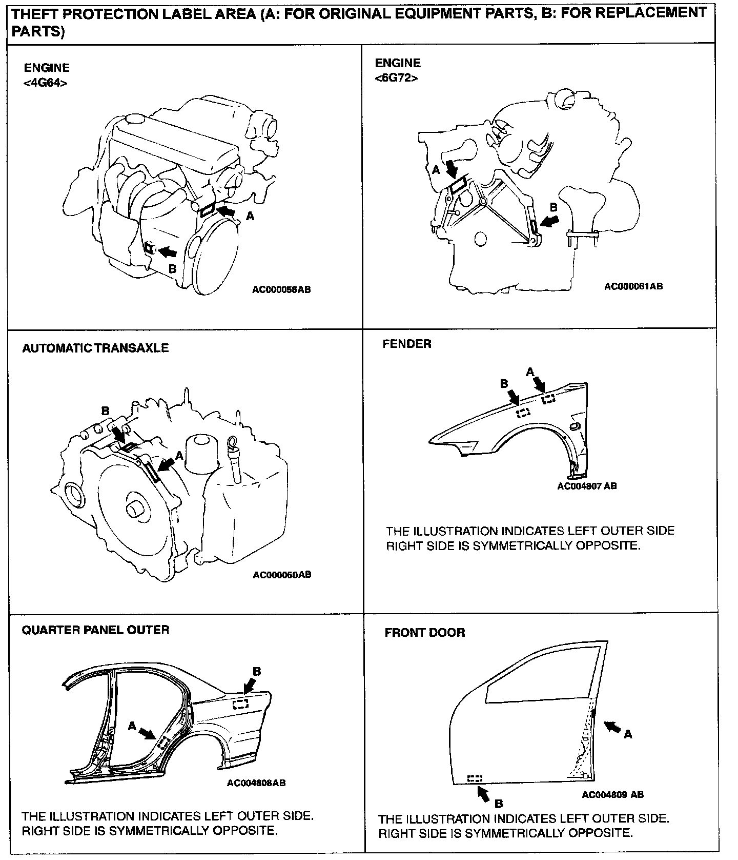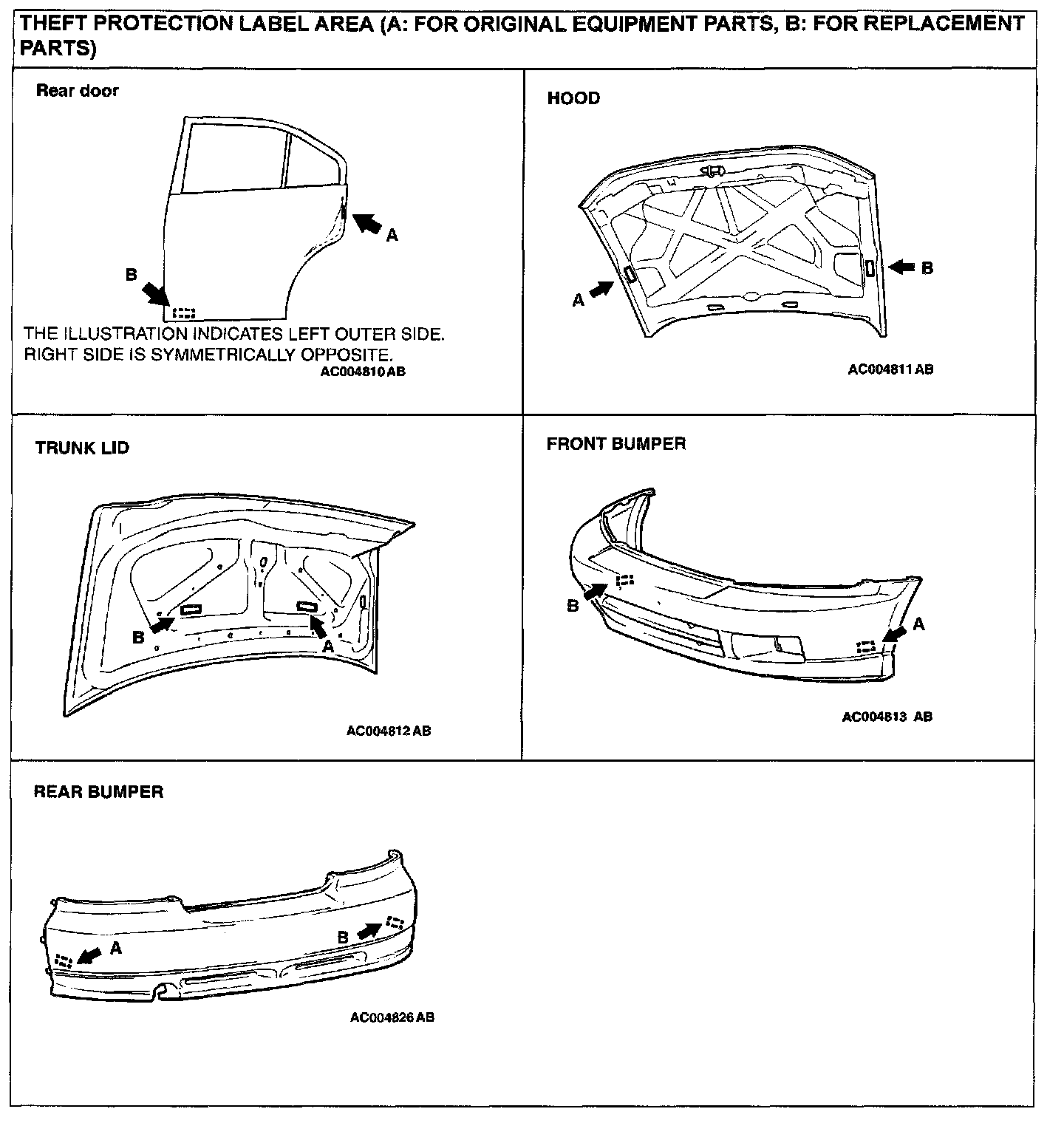In addition, a theft-protection label is attached to replacement parts for the body outer panel main components, and the same data is stamped into replacement parts for the engine and the transaxle.