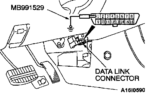 1. Use special tool MB991529 to ground number 1 terminal of the data link connector.