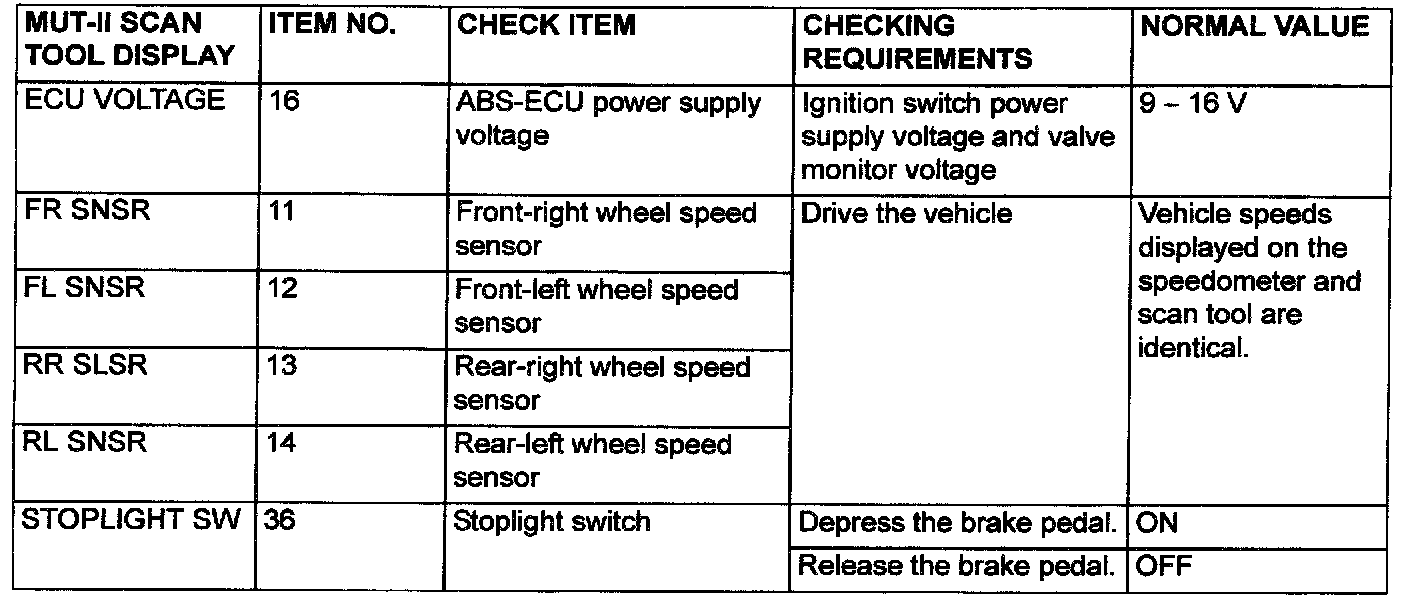 The following items can be read by the scan tool from the ABS-ECU input data.