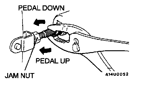 3. Loosen the operating rod jam nut. Turn the serrations of the operating rod with pliers to adjust the brake pedal height to the standard value.