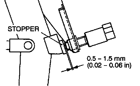 5. Turn the stoplight switch 1/4 turn clockwise to secure, and confirm that the clearance between the switch plunger and the stopper is as shown.