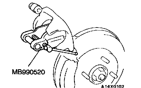 6. If the brake drag force exceeds the standard value, disassemble and clean the piston. Check for corrosion or worn piston seal, and check the sliding condition of the lock pin and guide pin.