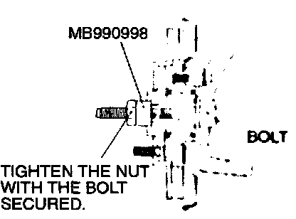 2. Attach special tool MB990998 to the front hub assembly as shown in the illustration, and tighten it to the specified torque.