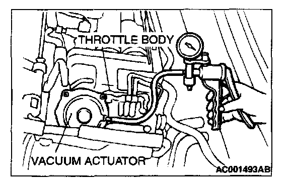 2. Check that the throttle lever operates when applying vacuum, and the vacuum is maintained.