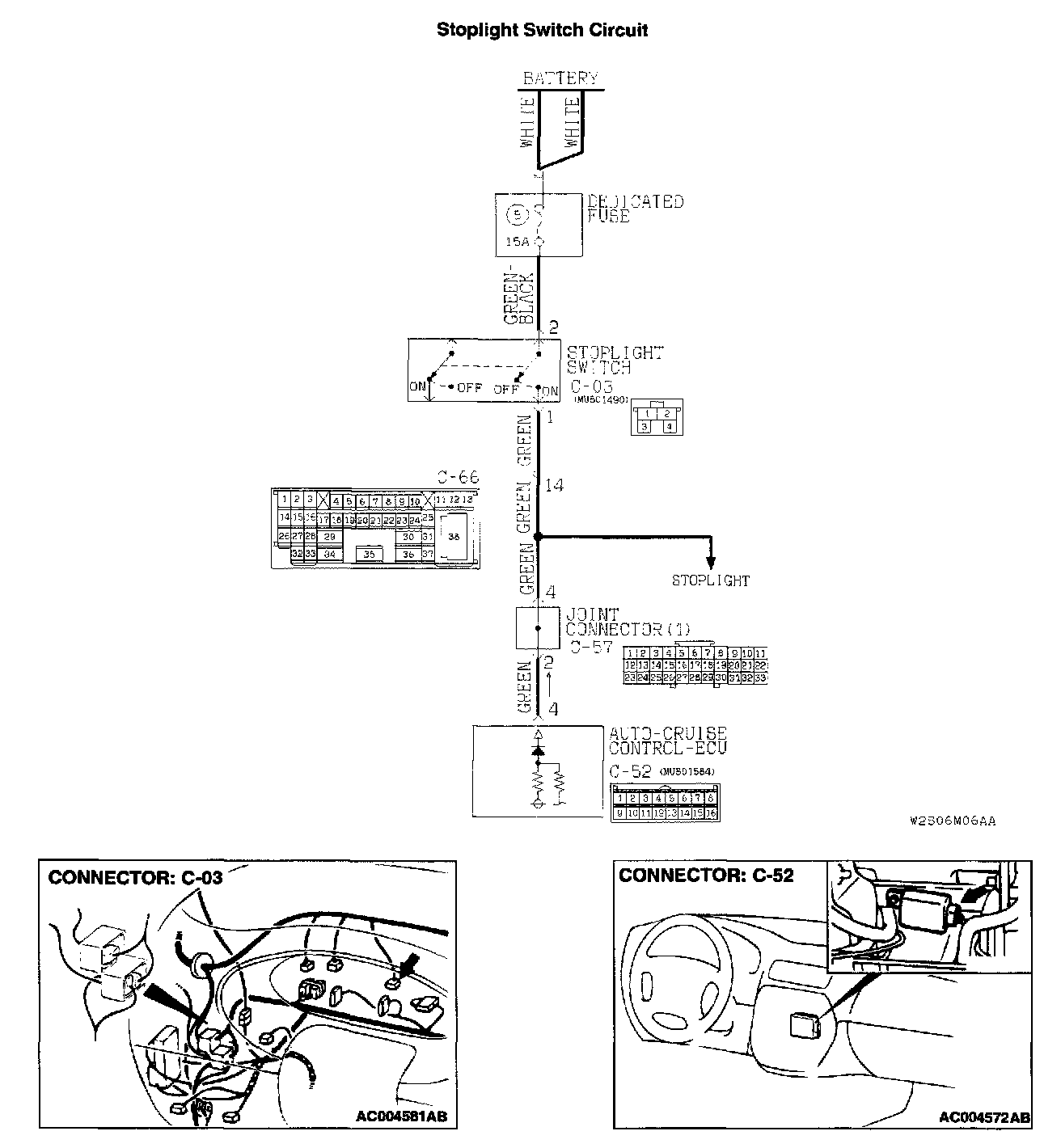 STEP 6. Check stoplight switch connector C-03 and intermediate connector C-66.