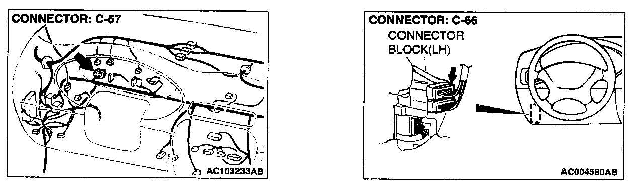 STEP 9. Check auto-cruise control-ECU connector C-52, joint connector (1) C-57 and intermediate connector C-66.