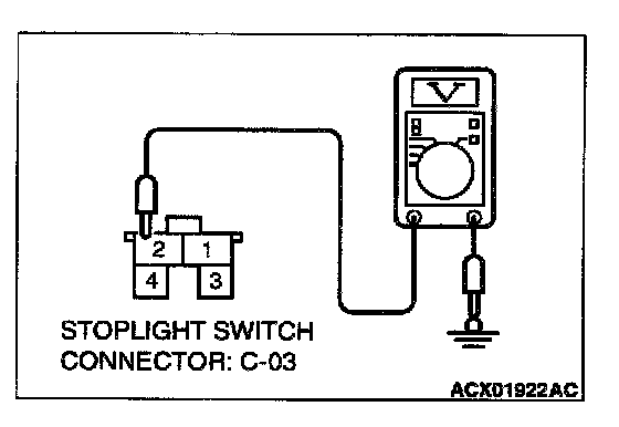 STEP 2. Check the 12-Volt supply circuit voltage at stoplight switch connector C-03.