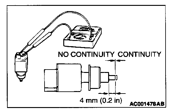 3. The stoplight switch is in good condition if the circuit is open when the plunger is pushed in to a depth of within 4 mm (0.2 inch) from the outer case edge surface, and if the resistance value is less than 2 ohm when it is released.