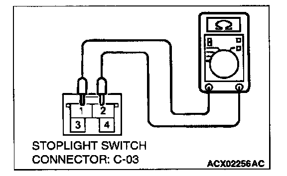 4. The check for continuity should be made at terminals 1 and 2 of the stoplight switch.