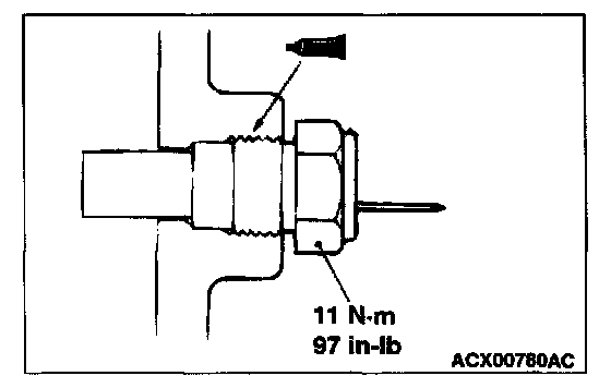 5. After checking, apply the 3M(TM) AAD part number 8731 Medium strength Blue or equivalent around the threads of the engine coolant temperature gauge unit.