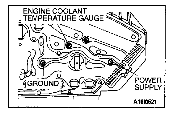 Engine coolant temperature gauge - Ground: Approximately 170 ohms
