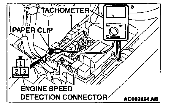 1. Attach an external high quality tachometer to the engine speed detection connector on the harness side (such as with a paper clip).