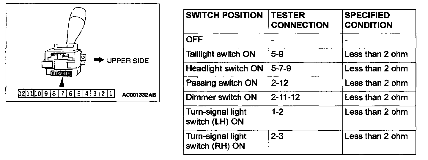 Combination Switch: Testing and Inspection