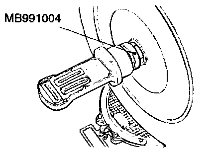 NOTE: For vehicles with aluminum type wheels, attach the camber/caster/kingpin gauge to the driveshaft by using special tool MB991004. Tighten special tool MB991004 to the same torque 196 - 255 Nm (145 - 198 ft. lbs.) as the driveshaft nut.