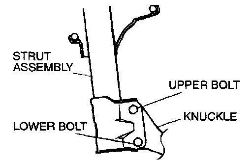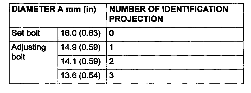 NOTE: the camber adjusting value that is required is greater than 1° 30', check for bent or damaged parts and replace as necessary. Bolts are identified in the following table: