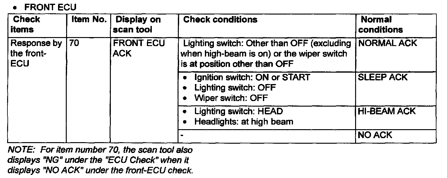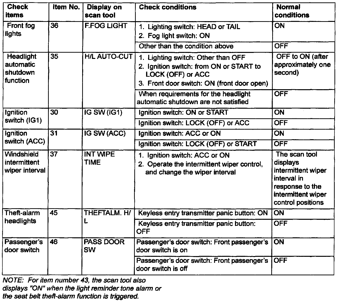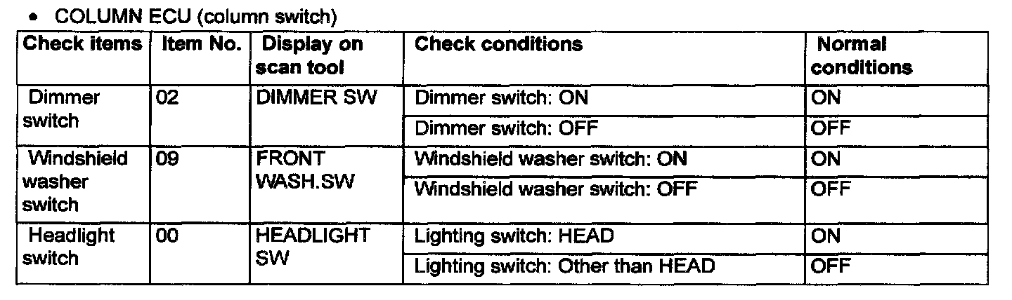 SERVICE DATA CHECK1. Use the scan tool and the SWS monitor kit to check "Service Data." This "Service Data" check is applicable for signals, which are transmitted and received through the SWS communication line. For input signals, which are not compatible with the SWS monitor kit, refer to the Pulse Check procedure (by using the scan tool or voltmeter).