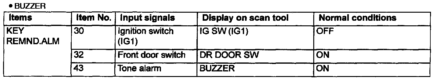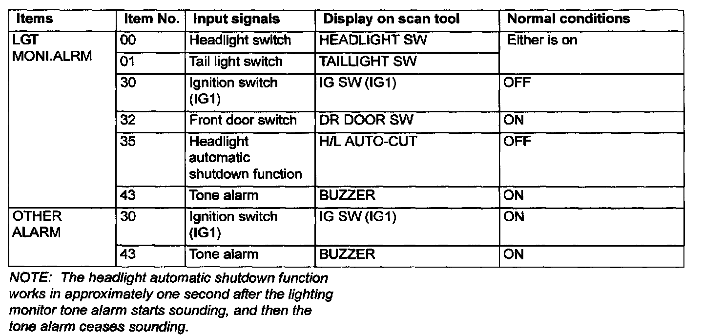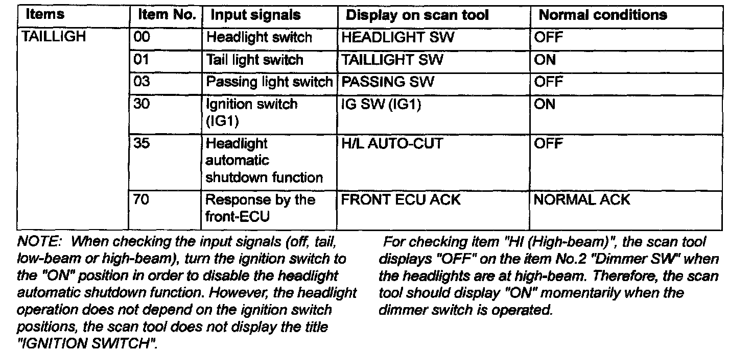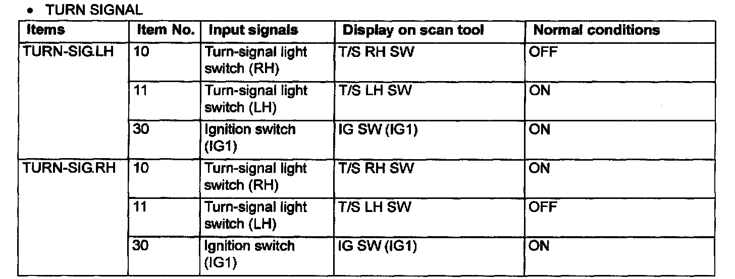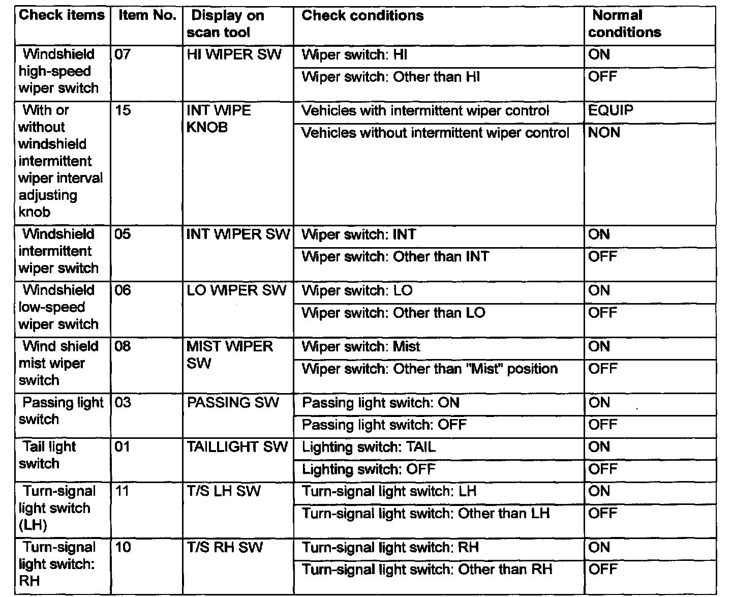 2. The following input signals can be checked by using the scan tool and the SWS monitor kit.