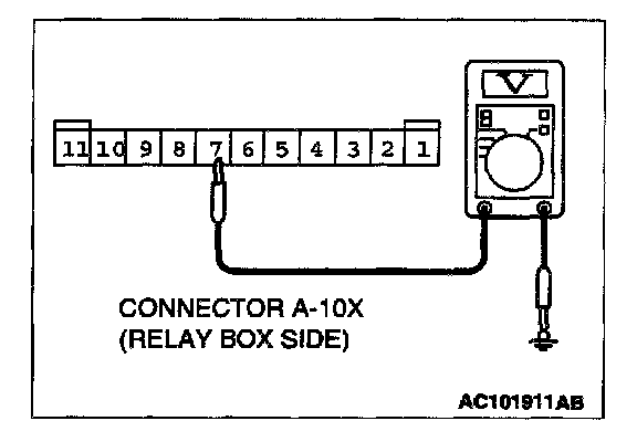 1. Disconnect front-ECU connector A-10X, and measure at the relay box side.