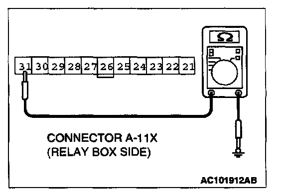1. Disconnect front-ECU connector A-11X, and measure at the relay box side.