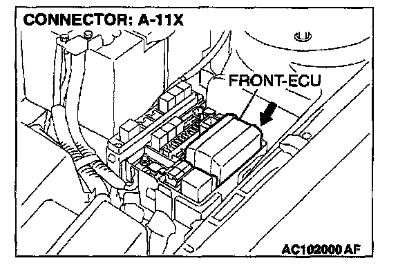 STEP 6. Check the front-ECU connector A-11X for damage.