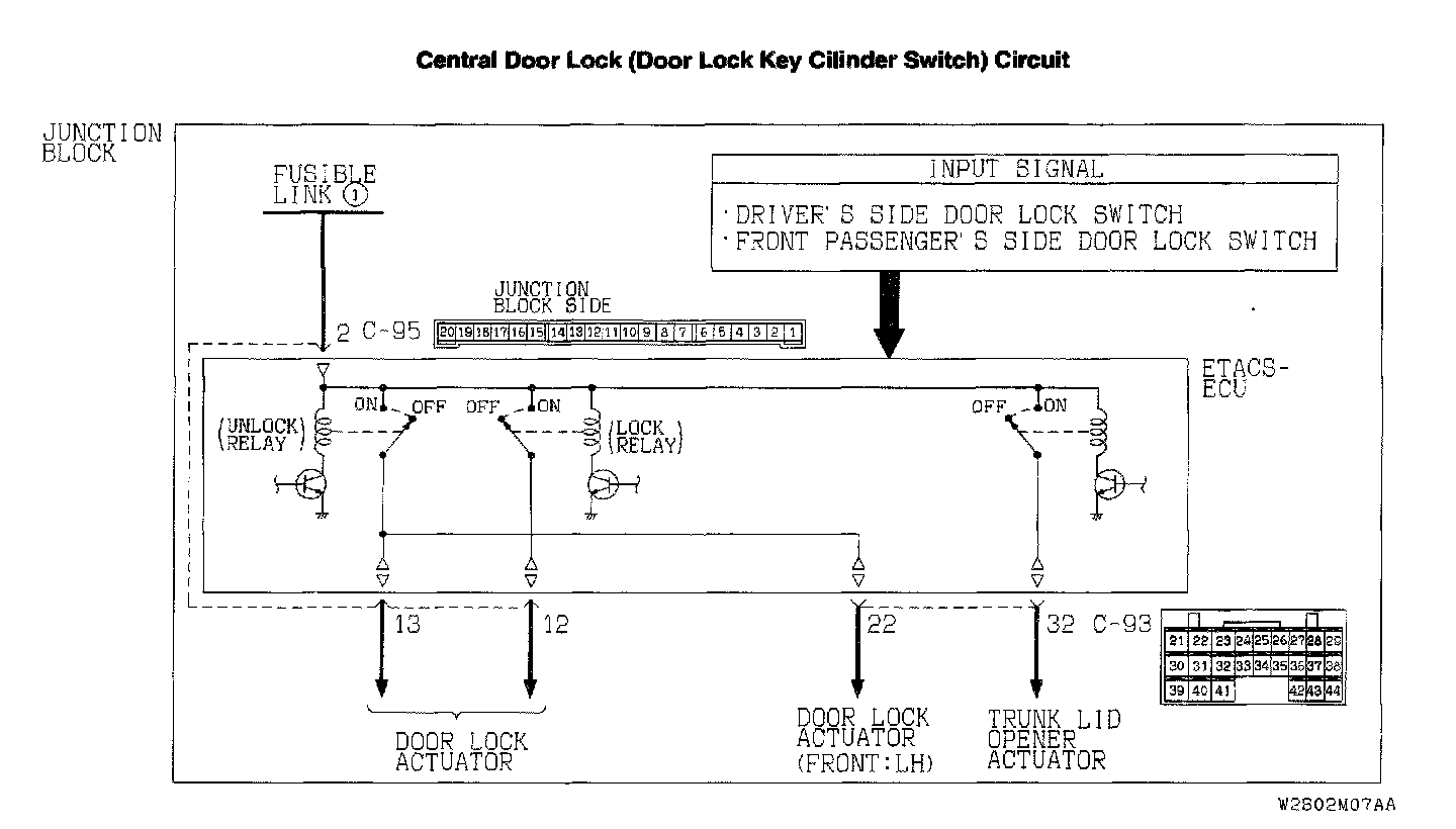 Central Door Lock (Door Lock Key Cylinder Switch) Circuit: