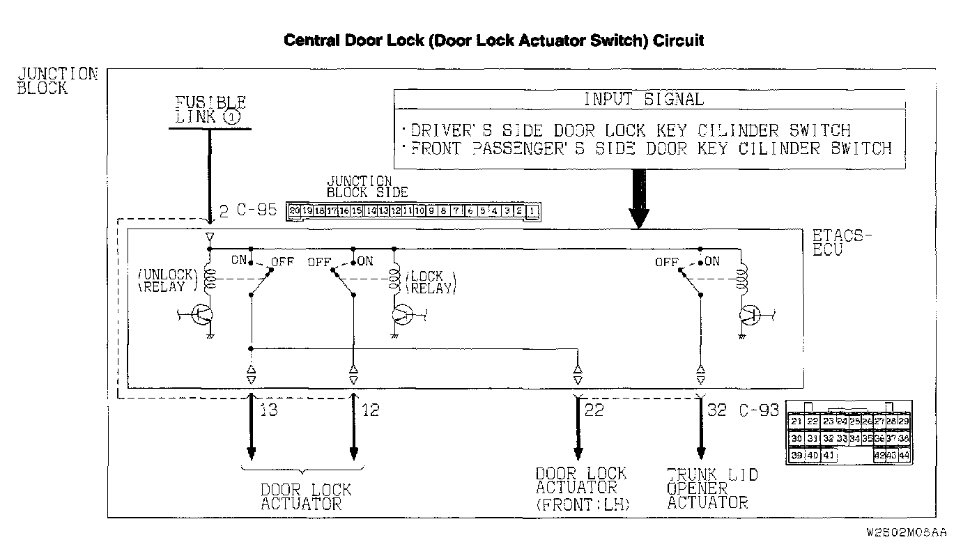 Central Door Lock (Door Lock Actuator Switch) Circuit: