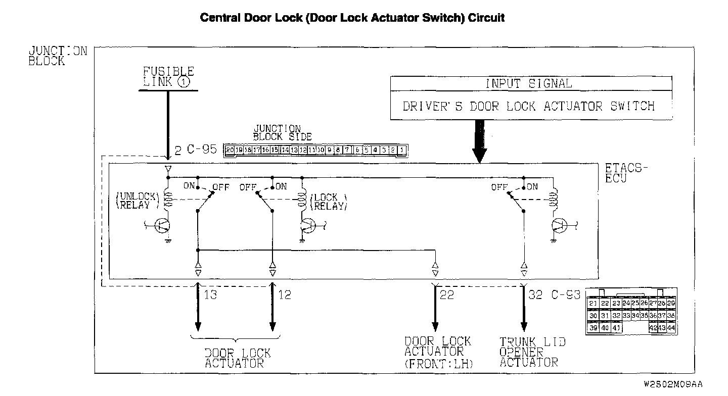 Central Door Lock (Door Lock Actuator Switch) Circuit: