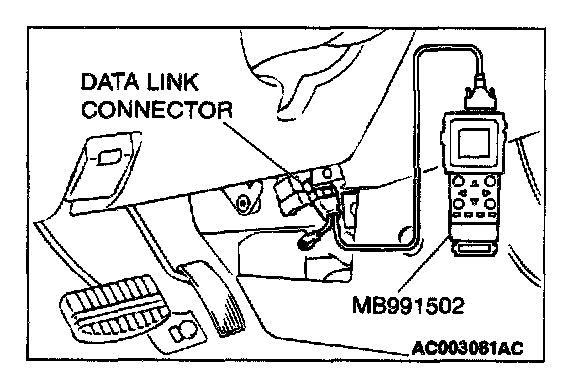 1. Connect scan tool MB991502 to the data link connector.
