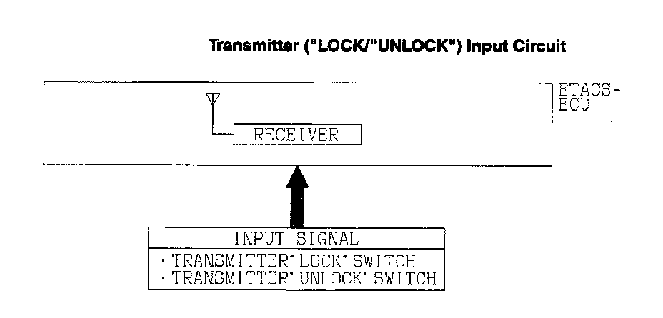 A receiver is incorporated in the ETACS-ECU. This receiver receives a lock or unlock signal from the transmitter.