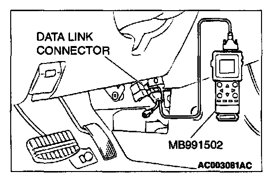 1. Connect scan tool MB991502 to the data link connector.