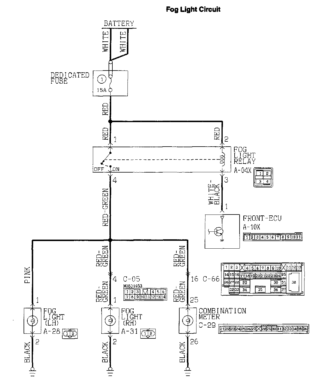 Q: Are fog light relay connector A-04X and combination meter connector C-29 in good condition?