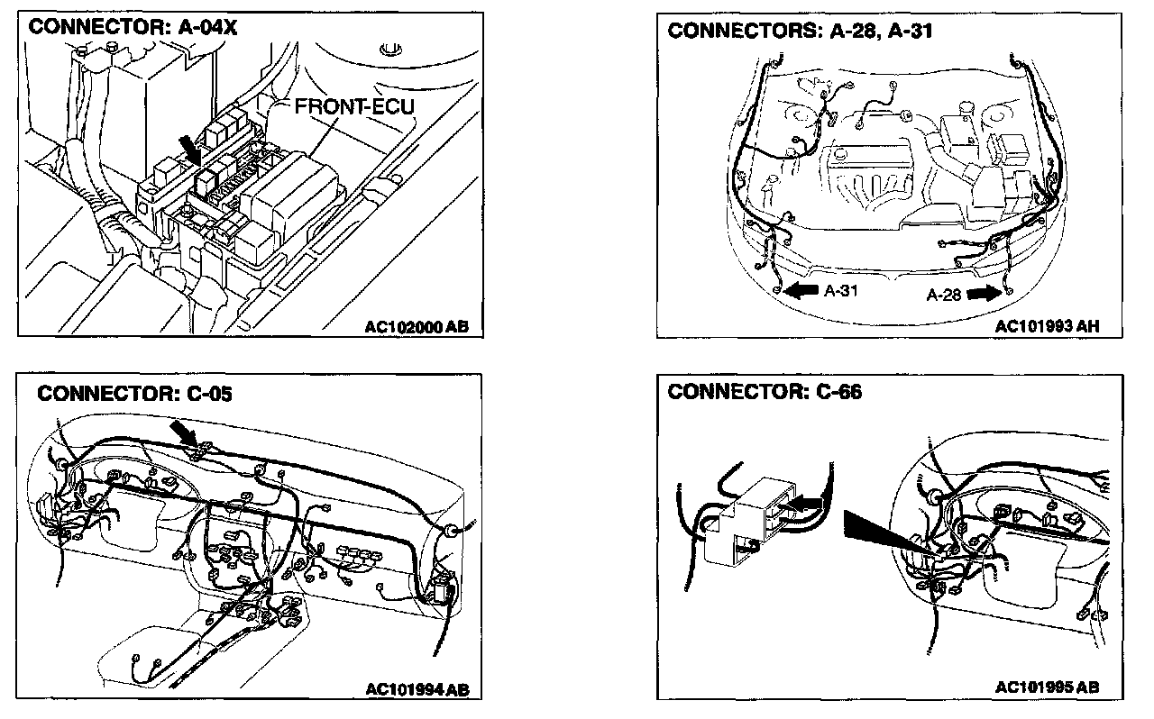 NOTE: Also check intermediate connector C-66. If intermediate connectors C-66 is damaged, repair or replace the connector as described in Harness Connector Inspection.