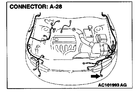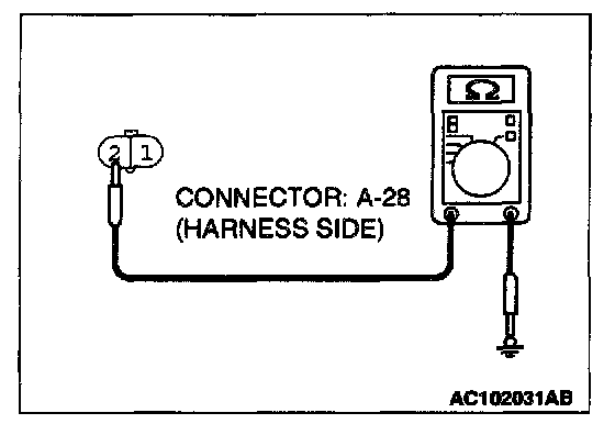 STEP 3. Measure at fog light (LH) connector A-28 in order to check the ground circuit to the fog light (LH).