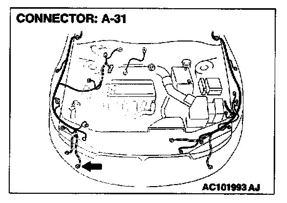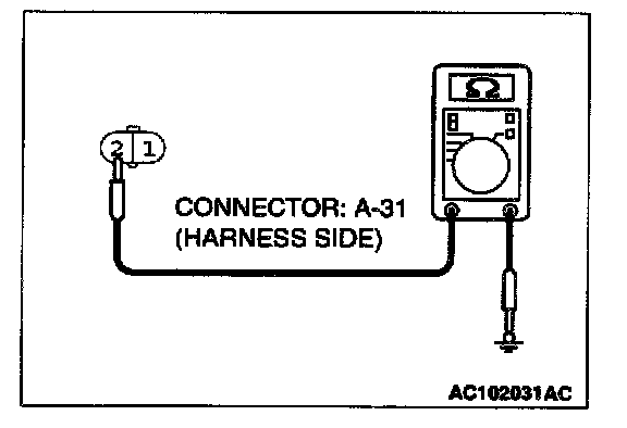 STEP 9. Measure at fog light (RH) connector A-31 in order to check the ground circuit to the fog light (RH).