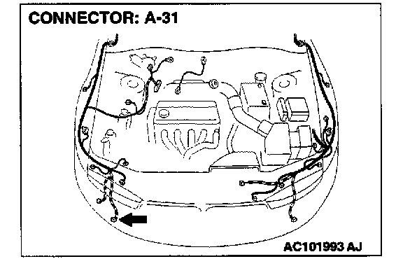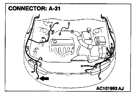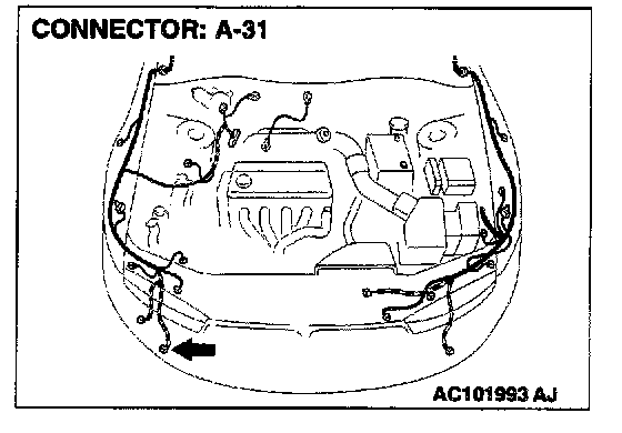 1. Disconnect fog light (RH) connector A-31, and measure at the wiring harness side.