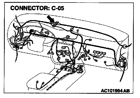 NOTE: Also check intermediate connector C-05. If intermediate connectors C-05 is damaged, repair or replace the connector as described in Harness Connector Inspection.