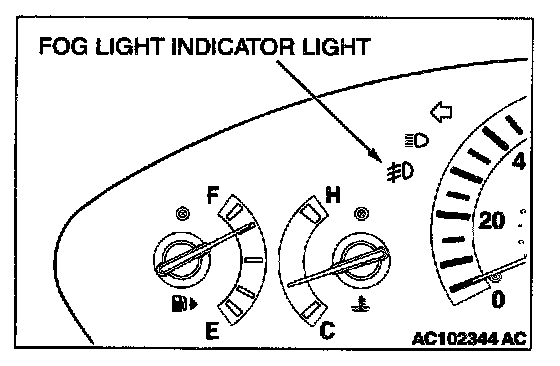 If one of the fog lights does not illuminate, the fog light relay or the fog light bulb may be defective. If the fog light indicator light does not illuminate, the combination meter may be defective.