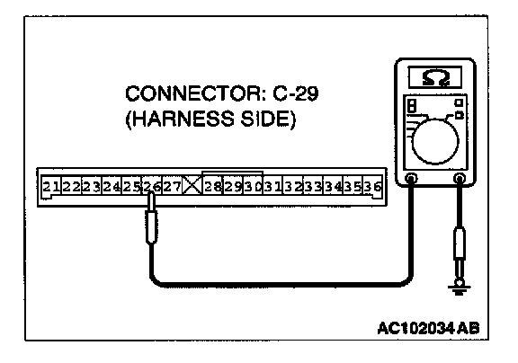 STEP 15. Measure at combination meter connector C-29 in order to check the ground circuit to the fog light indicator light.