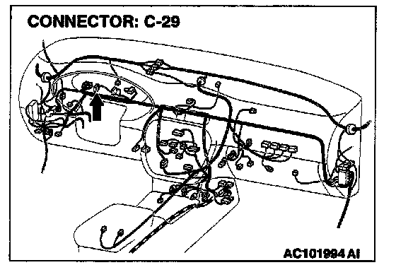 1. Disconnect fog light indicator light connector C-29, and measure at the wiring harness side.