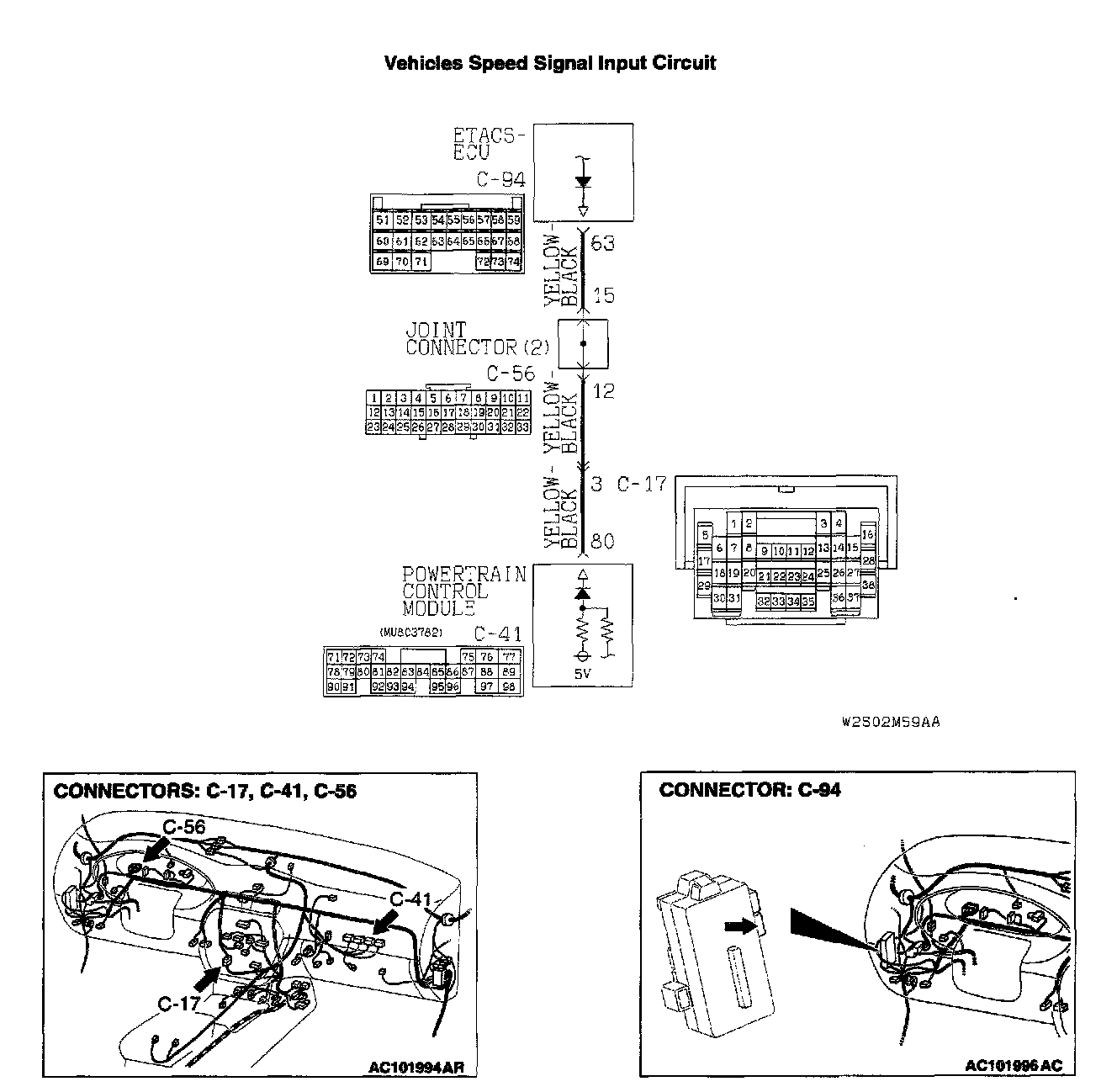 If the signal is not normal, the wiper interval, which is described in "CIRCUIT OPERATION", will not be changed correctly. If the signal is not normal, the powertrain control module or the ETACS-ECU may be defective.