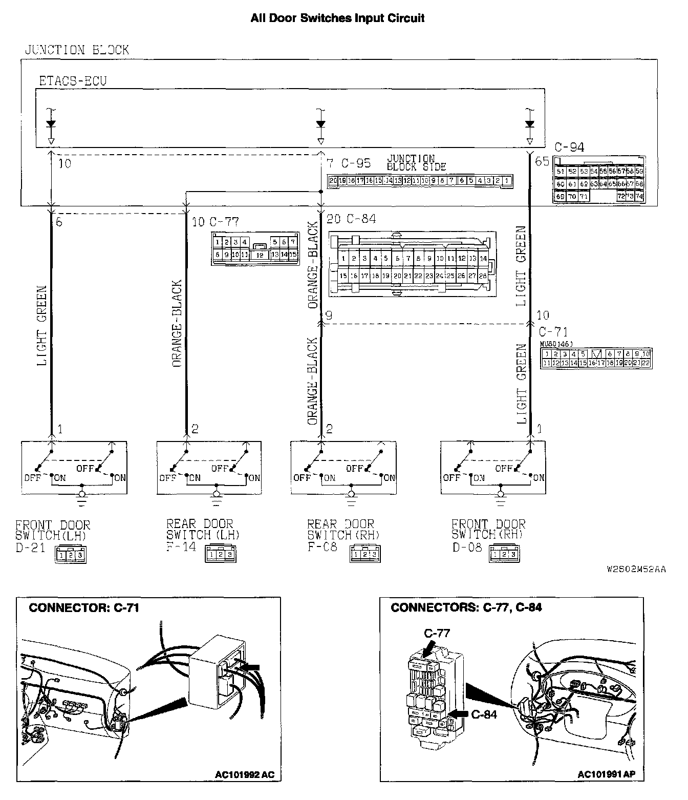 Driver's or front passenger's door: Refer to Inspection Procedure N-4 "ETACS-ECU does not receive a signal from the driver's or the front passenger's door switch."