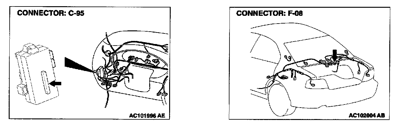 STEP 8. Check rear door switch (RH) connector F-08 and ETACS-ECU connector C-95 for damage.