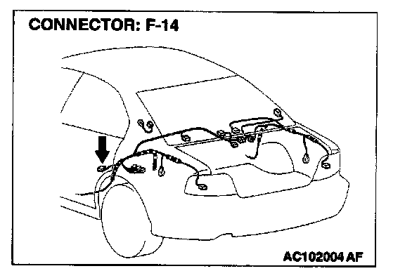 STEP 5. Check the wiring harness between rear door switch (LH) connector F-14 and ETACS-ECU connector C-95.
