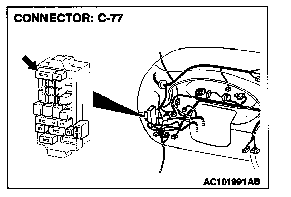 NOTE: Also check junction block connector C-77. If junction block connector C-77 is damaged, repair or replace the connector as described in Harness Connector Inspection.
