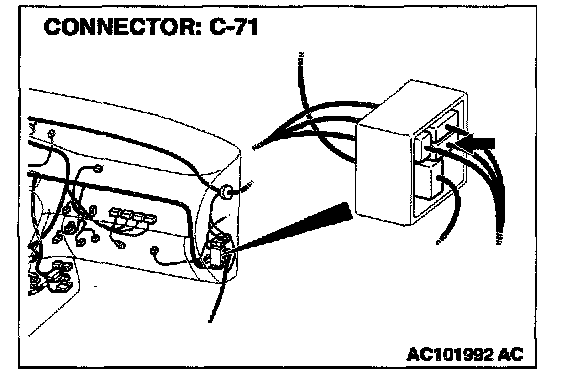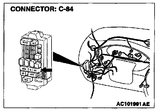 NOTE: Also check intermediate connector C-71 and junction block connector C-84. If intermediate connector C-71 or junction block connector C-84 is damaged, repair or replace the connector as described in Harness Connector Inspection.